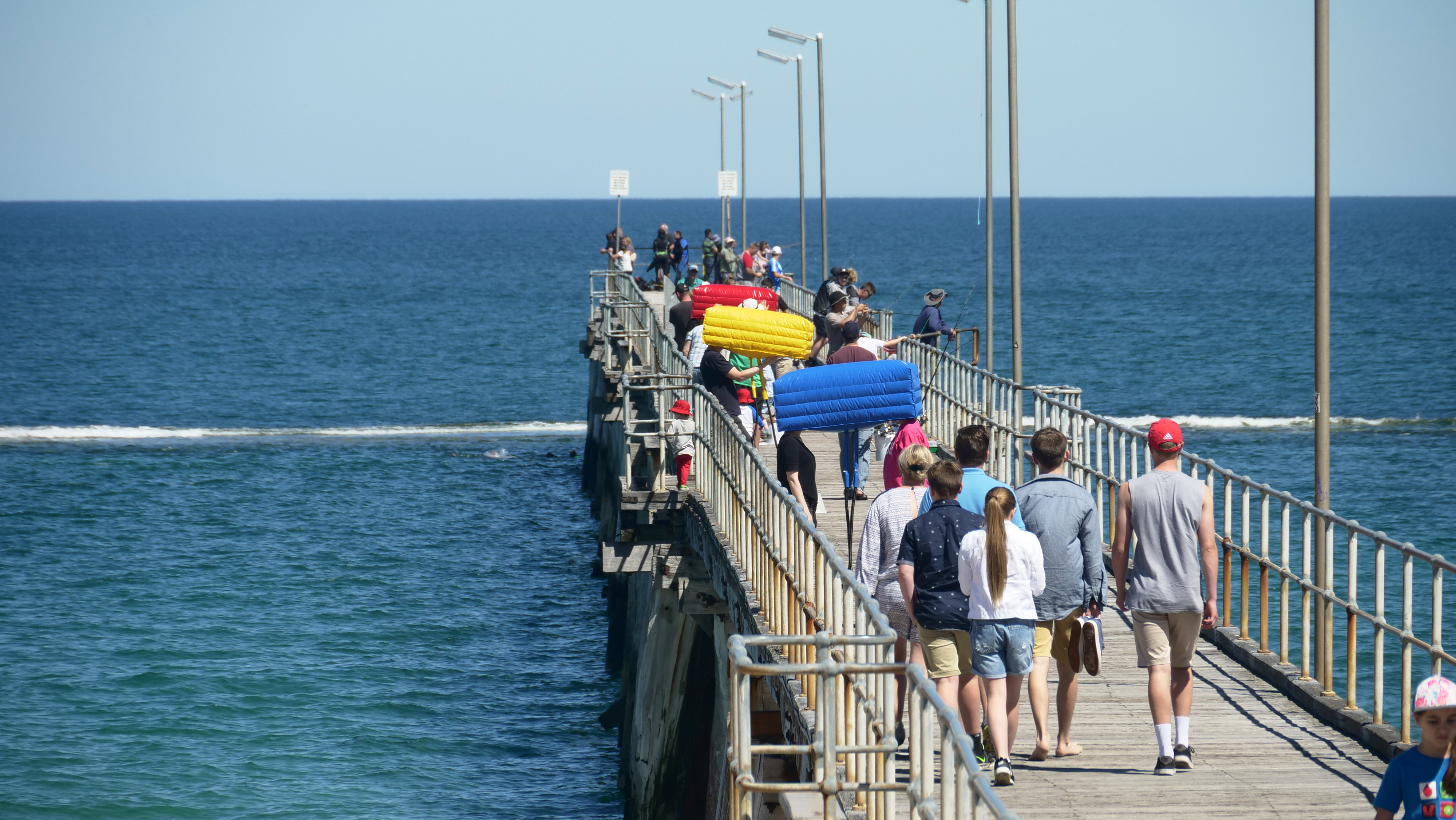 Trio (Red, Yellow and Blue) is a mobile public artwork work for three performers. Commissioned by OSCA, South Australia for the art project Slightly Unusual Experiences, the work seeks to establish a correspondence with an incidental audience who experience the work unexpectedly. The work employs three inflatable, pump-powered small-scaled sculptures that invite visitors to interact with their surroundings and with the unknown and unseen strangers in unique ways. The sculptures allow two people to place their heads into the object and view each other through a tunnel. But to maintain this engagement both performer and participant must keep pumping not too hard and not too soft but just right.